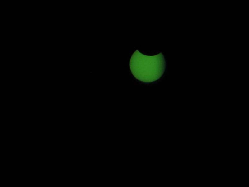 durante el eclipse anular, el color verde se debe a que delante del objetivo tenia un vidrio de soldar
