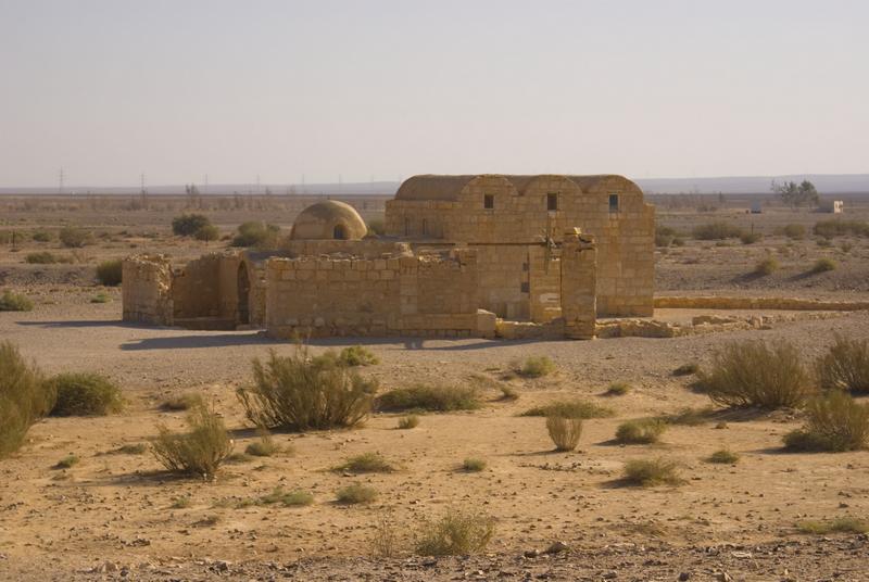 palacio de qusair ‘amra, uno de las residencias omeyas en el desierto al este de amman, jordania, agosto 2007
