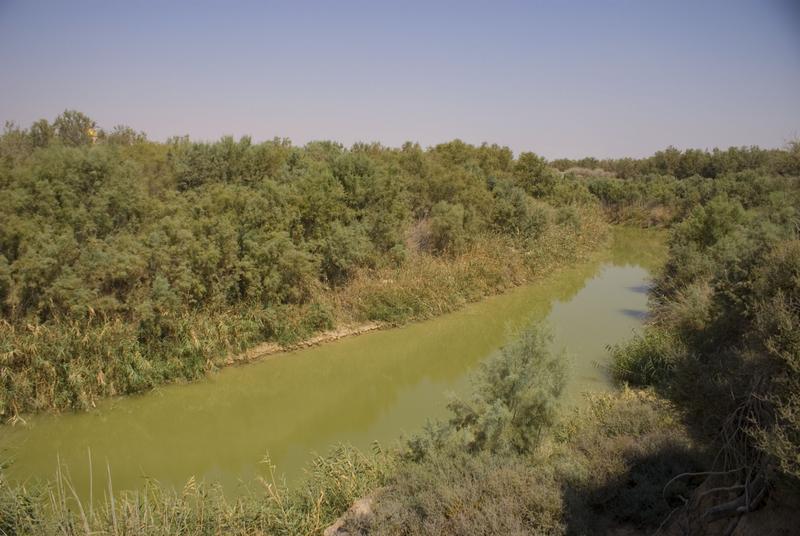 rio jordan, en betania, con cisjordania al otro lado, jordania, agosto 2007