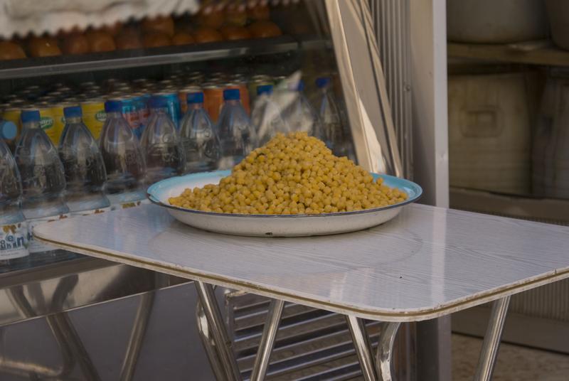 garbanzos para hacer humus o falafel en una calle de damasco, siria, agosto 2007