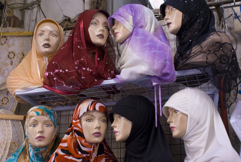 distintos velos en una tienda de damasco, siria, agosto 2007