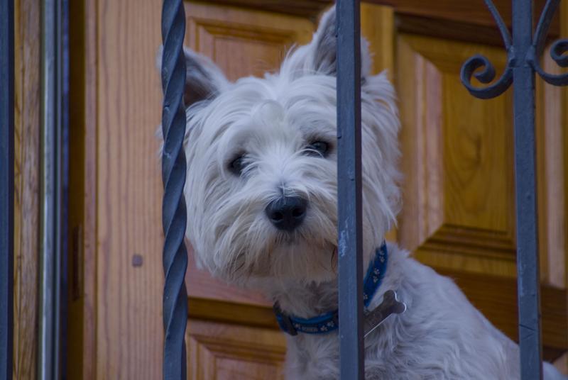 perro en un balcón, ayllón, segovia, septiembre 2007