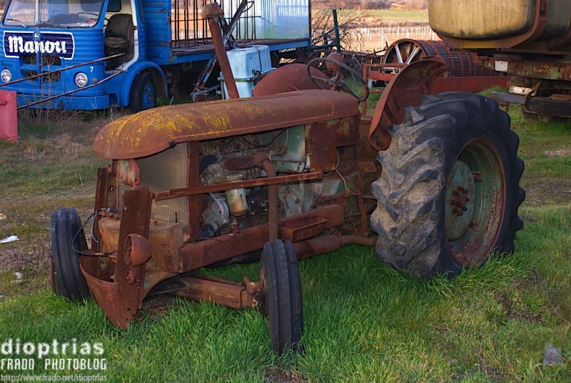 antiguo tractor en los oteros, león, febrero de 2008