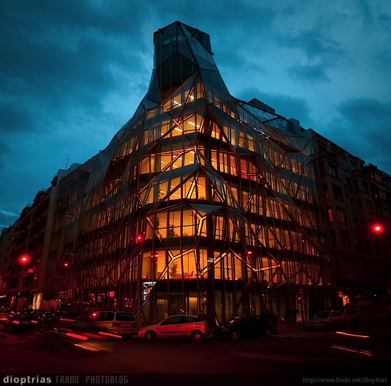 Magnifico contraste de luces, cielo azulado y frio contra el edificio calido, buen resultado