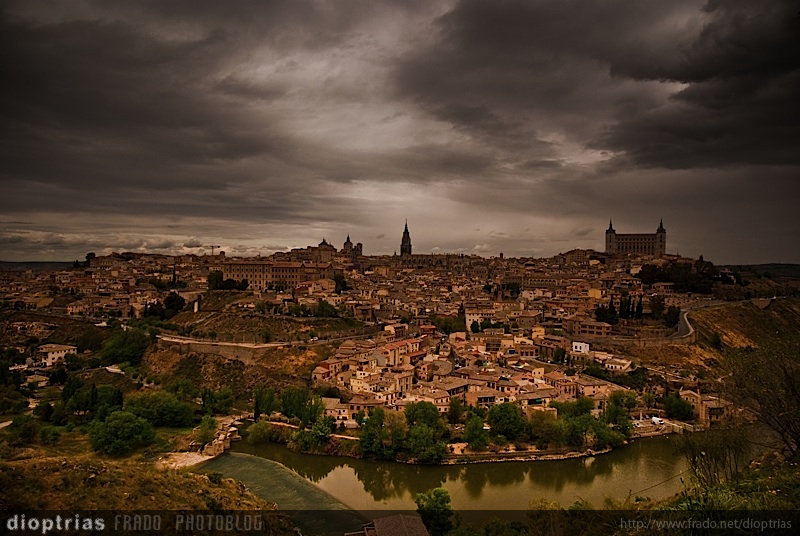 Fantástica captura de Toledo, la ciudad parece más grande vista en esta panorámica. Me encanta el tratamiento que le diste, dando fuerza al cielo y dejando esa tonalidad que acentúa la antigüedad de la ciuda. Buena captura.