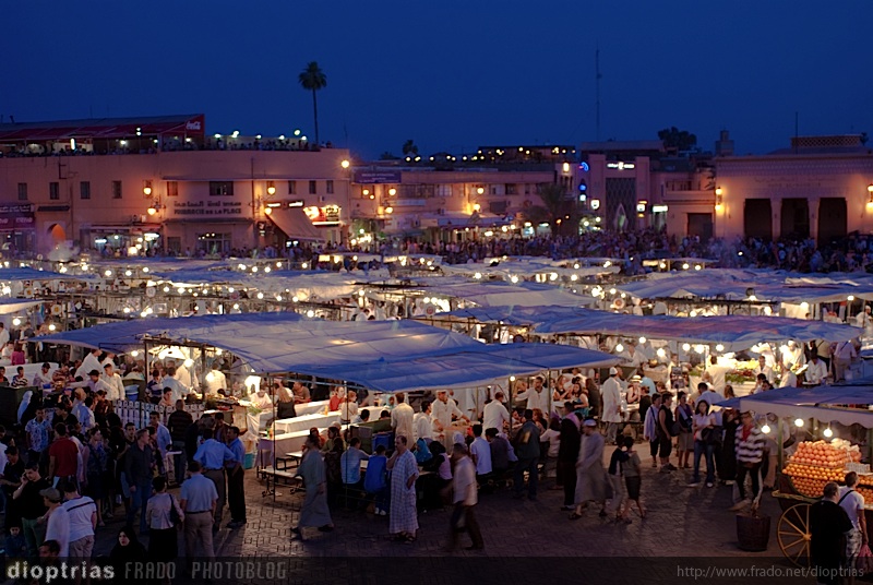 vista nocturna de la plaza de jamaa el fna, marrakesh, mayo de 2009