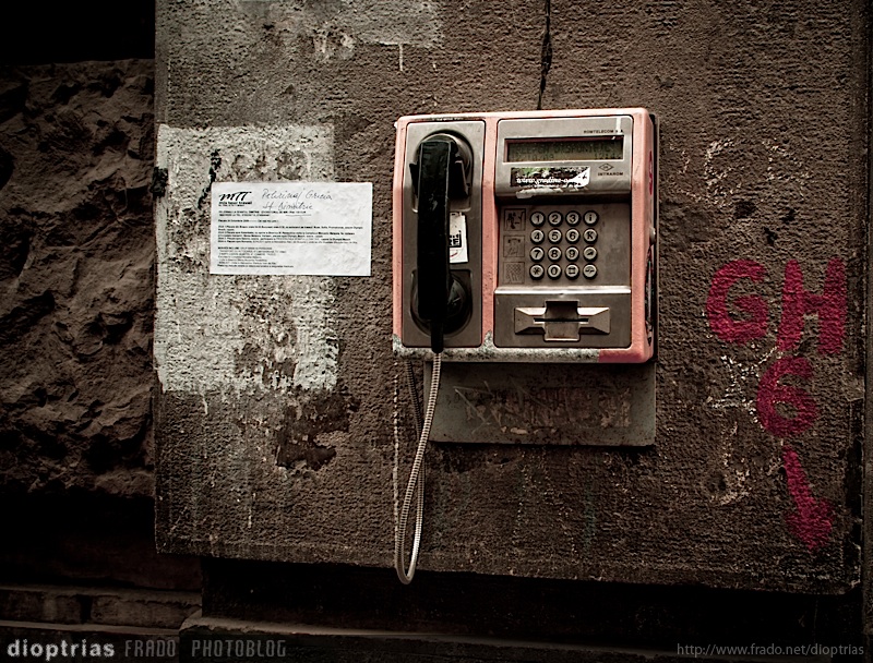cabina telefónica en una calle de bucarest, rumania, octubre de 2009