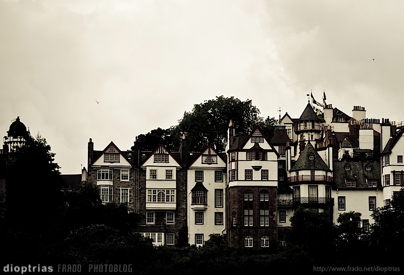 casas cerca del castillo de edimburgo, escocia, agosto de 2010
