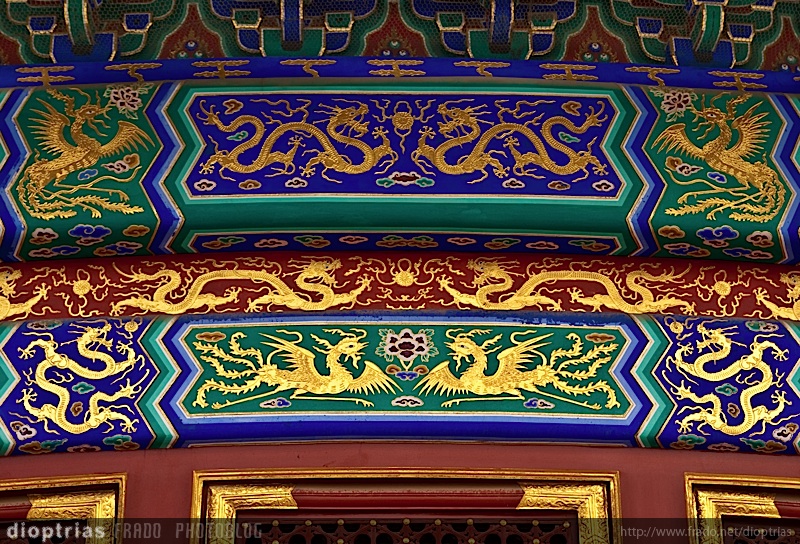 detalle del pabellón de la oración por las buenas cosechas, templo del cielo, beijing, china, agosto de 2011