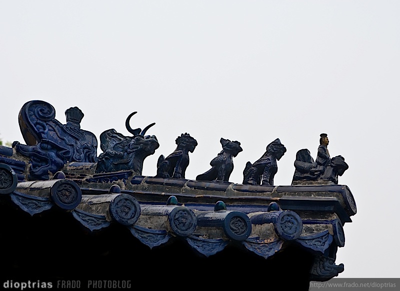 detalles de los tejados en la puerta del muro del eco en el templo del cielo, beijing, china, agosto de 2011