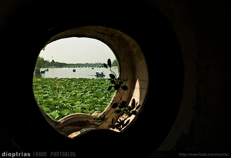 puente enmarcado en el palacio de verano, beijing, china, agosto de 2011