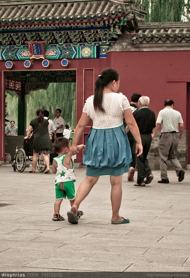los pequeños chinitos no utilizan pañales, en su defecto llevan el pantalón rajado y lo hacen donde les apetece, imaginaros que los niños chinos llevaran pañales desechables, adiós amazonas, beijing, china, agosto de 2011