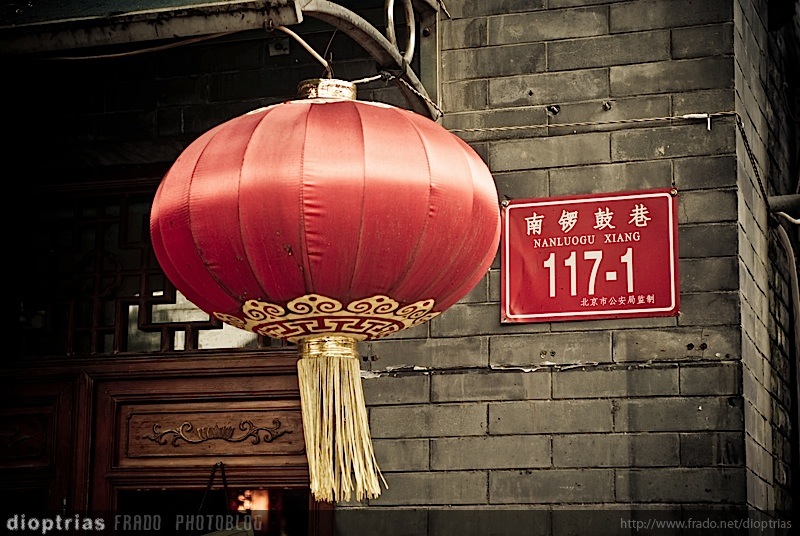 farolillo en un hutong, beijing, china, agosto de 2011