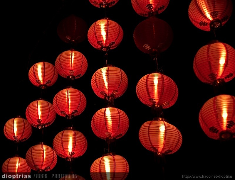farolillos en un hutong, beijing, china, agosto de 2011