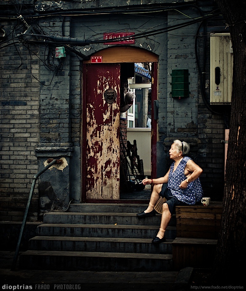 a la puerta de su casa en un hutong, beijing, china, agosto de 2011