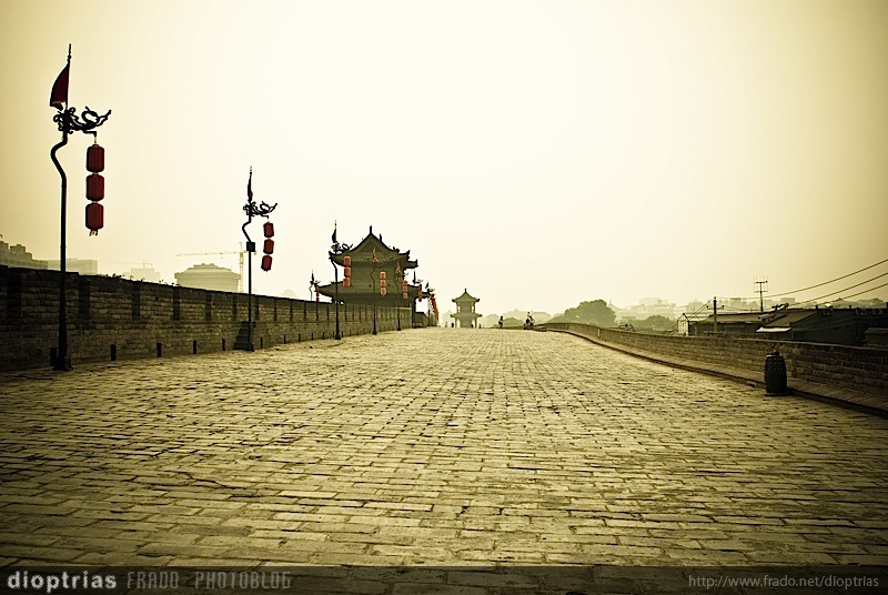 paseo por la parte superior de la muralla de xi’an, de 14km de perímetro, china, agosto de 2011