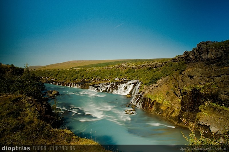 cascada en el río Hvitá, que parece surgir del campo de lava de Hallmundarhraun, islandia, agosto de 2014