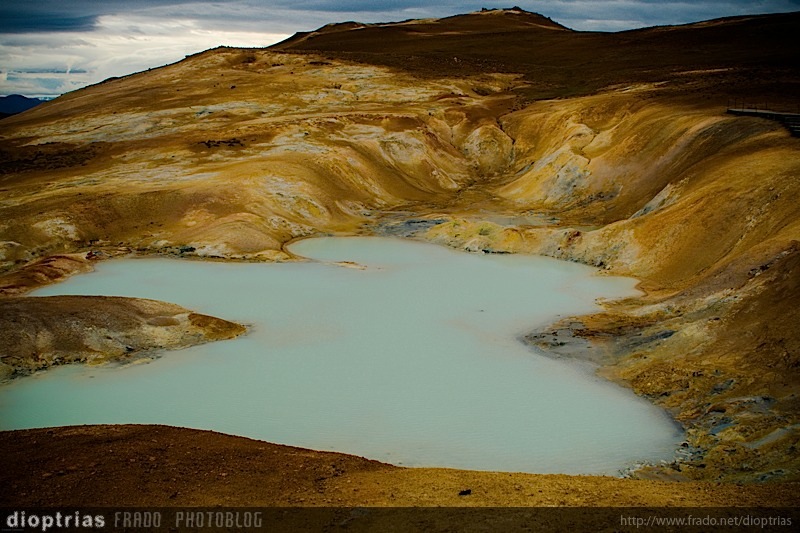 laguna cargada de azufre en krafla, islandia, agosto de 2014